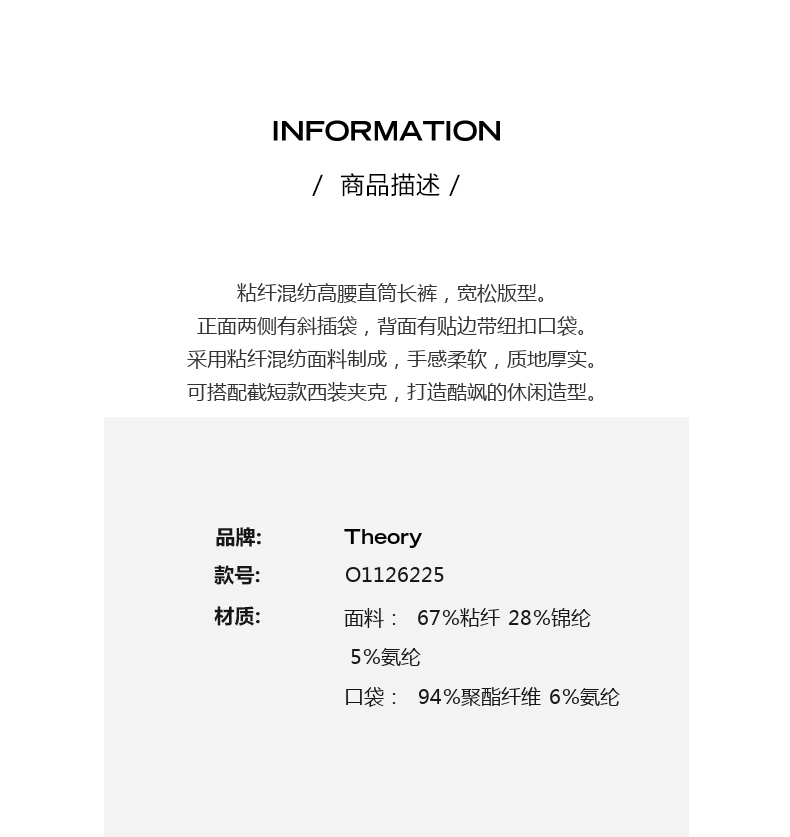 Theory 2025 Frühes Frühjahr Neue Damen-Viskose-Misch hose mit geradem Bein O1126225