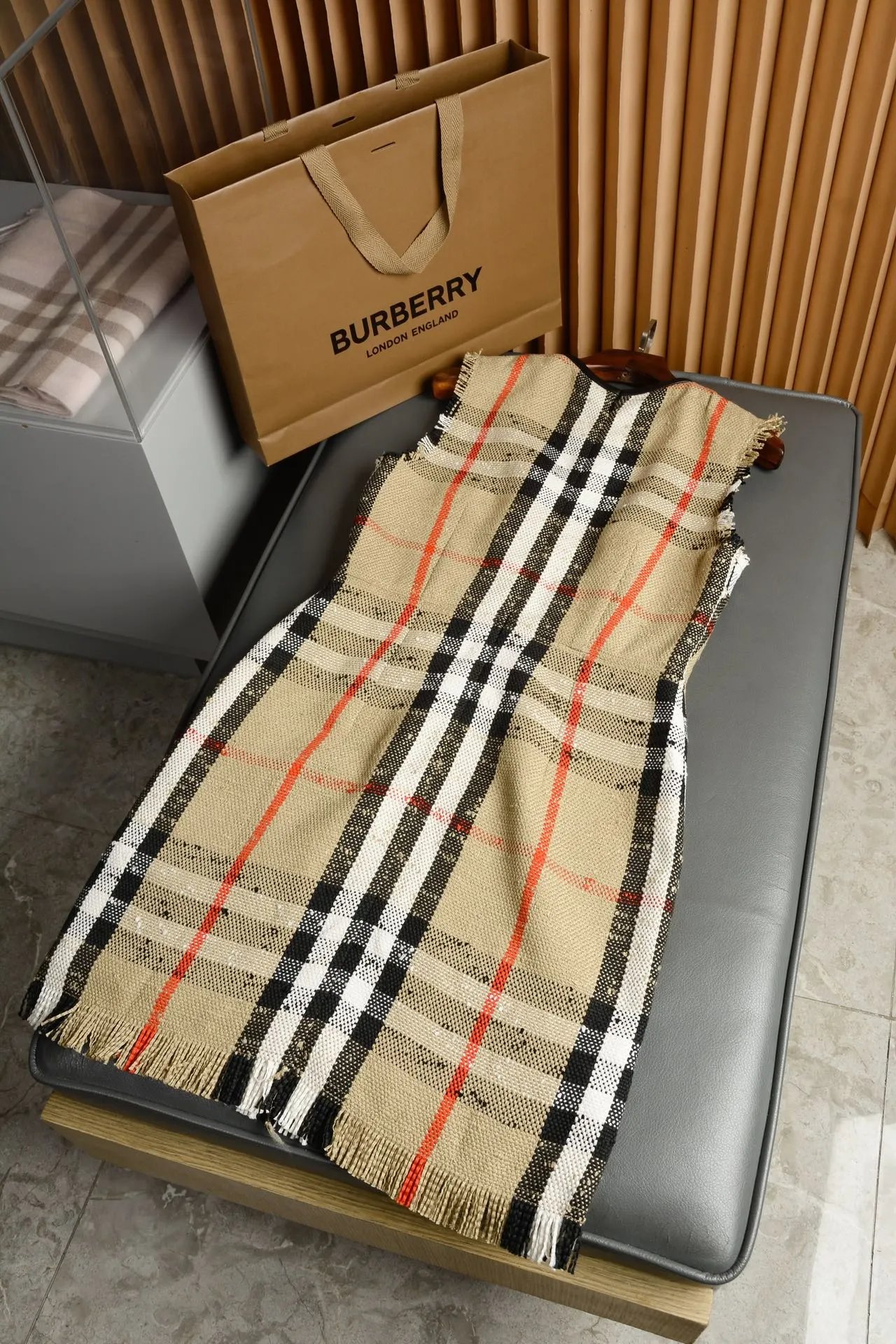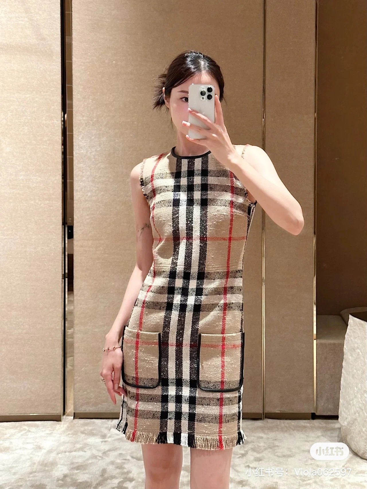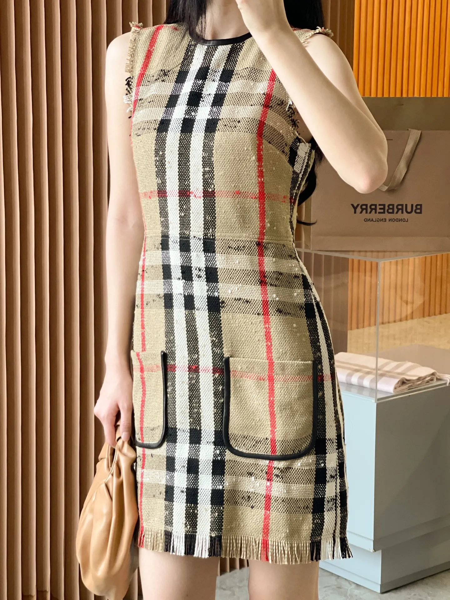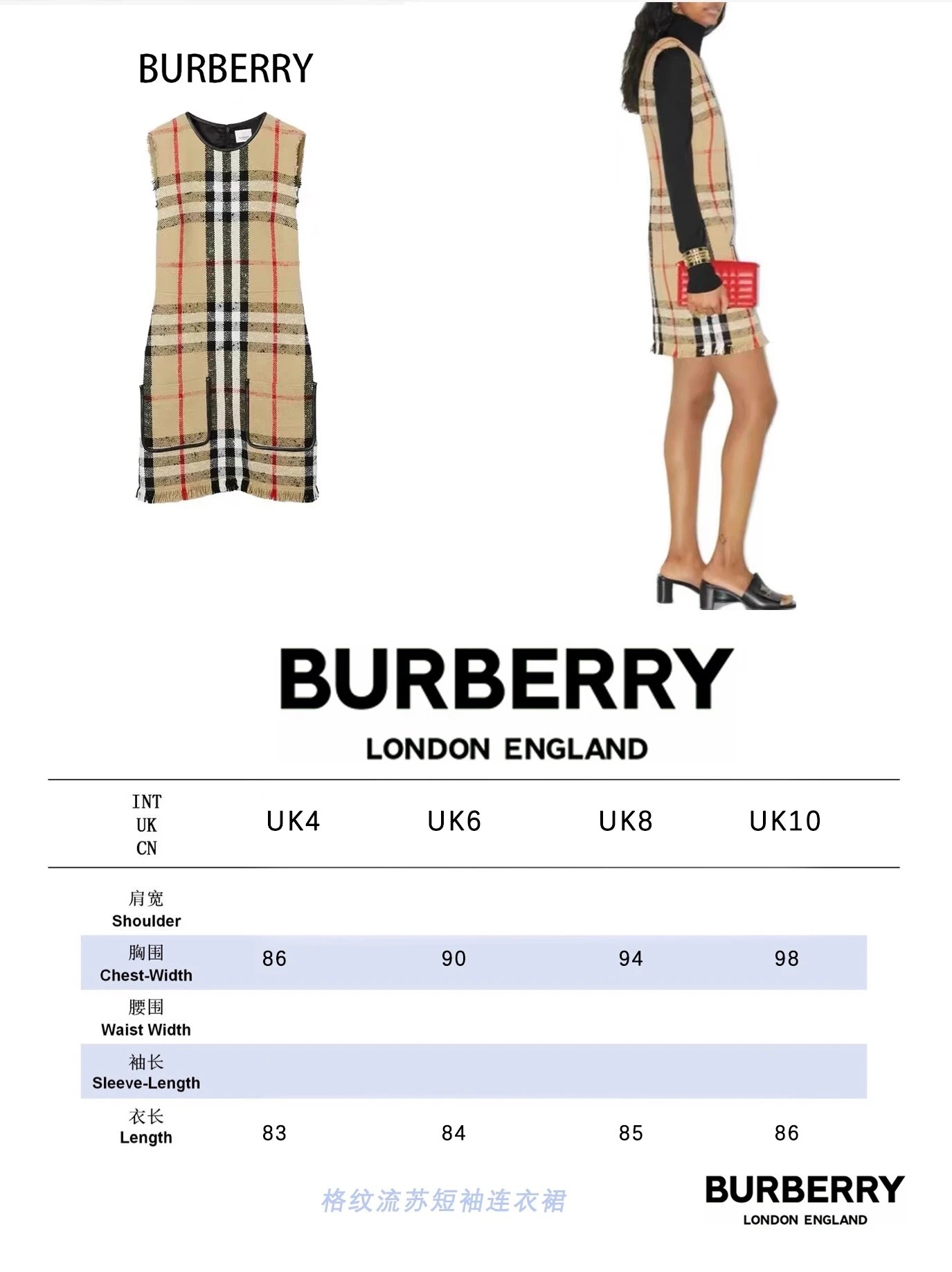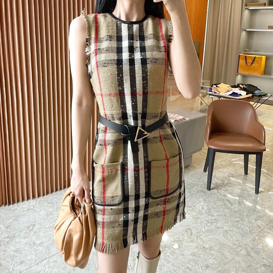 [Damen bekleidung] B * urberry Plaid Quaste Kurzarm kleid