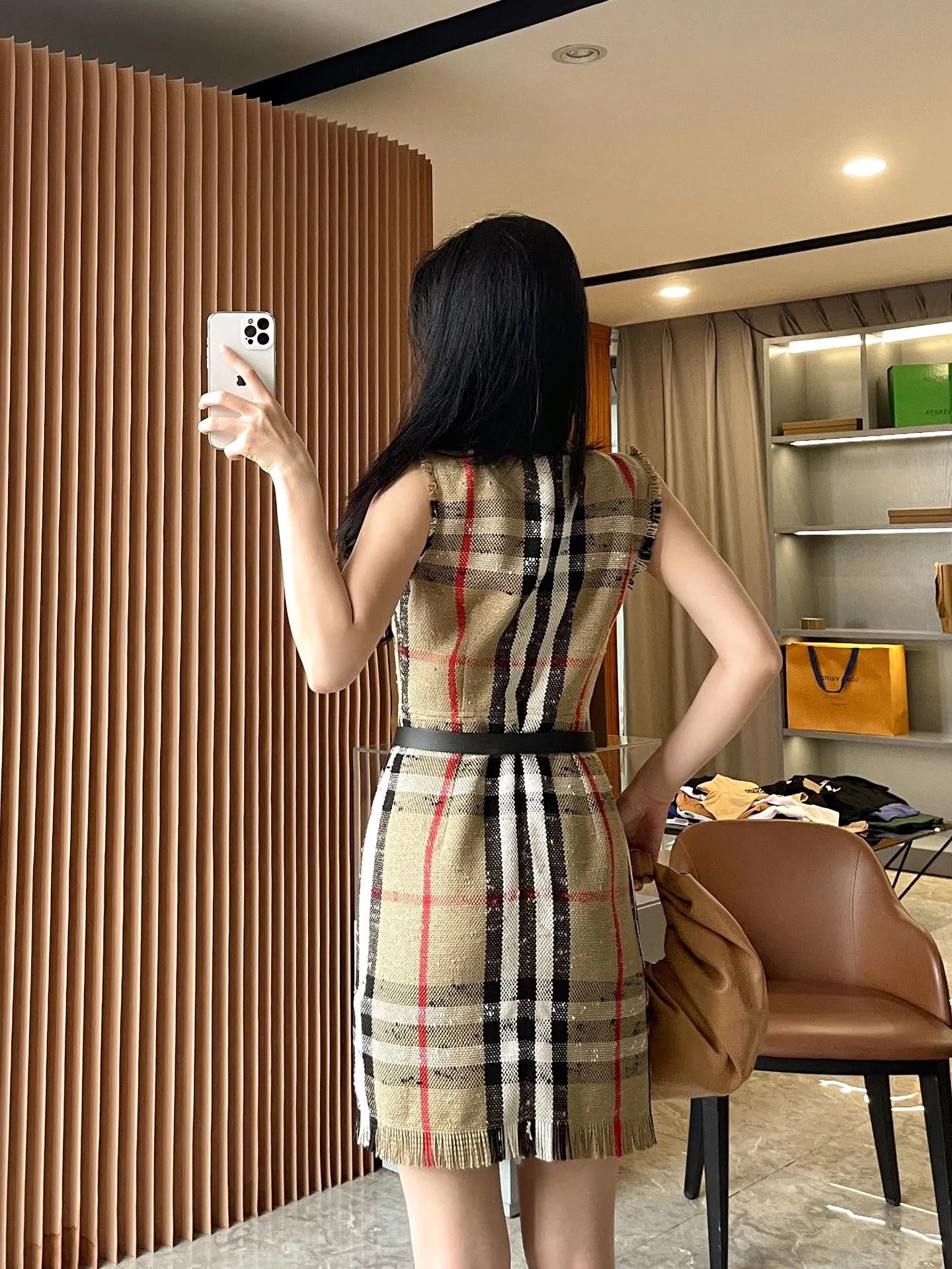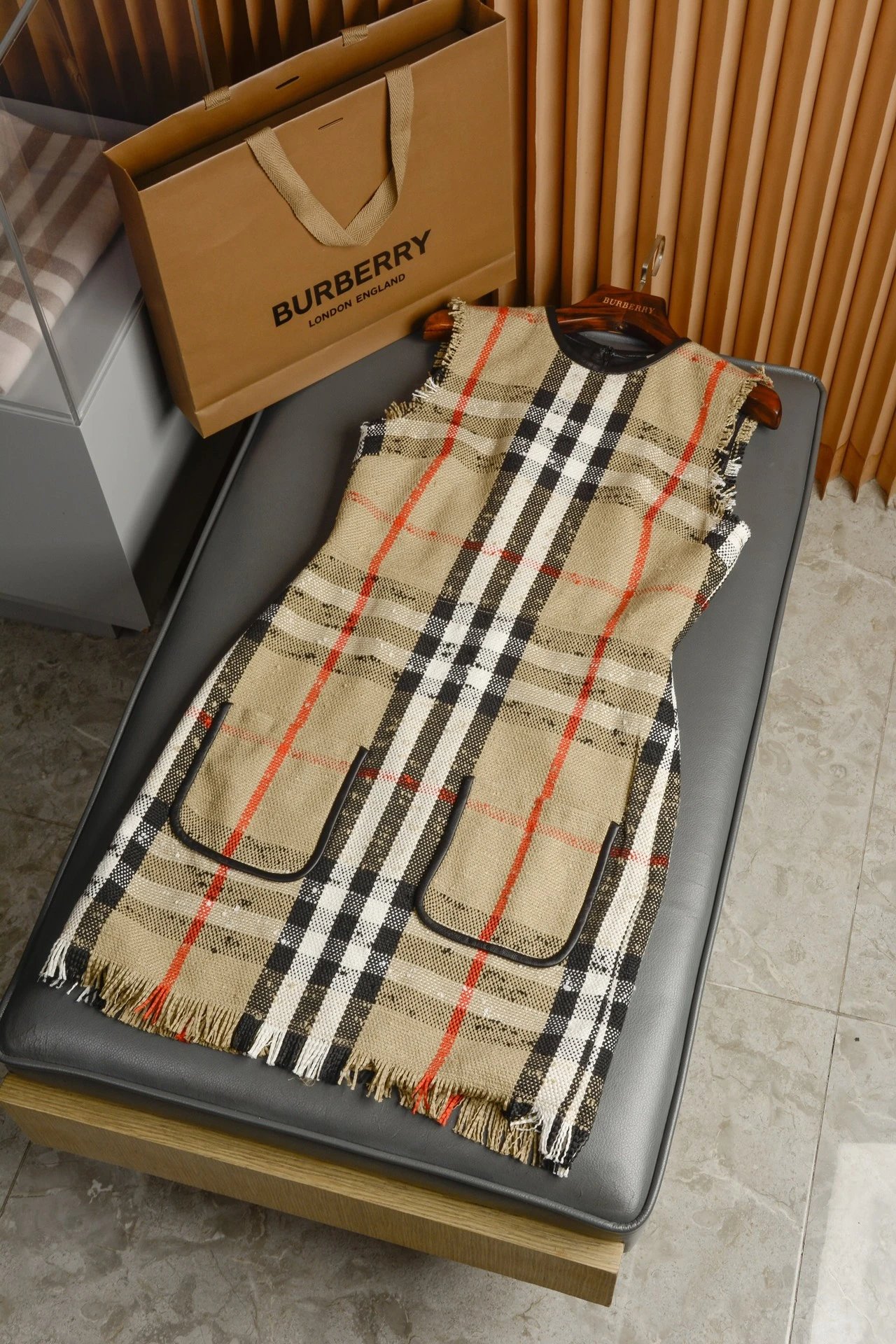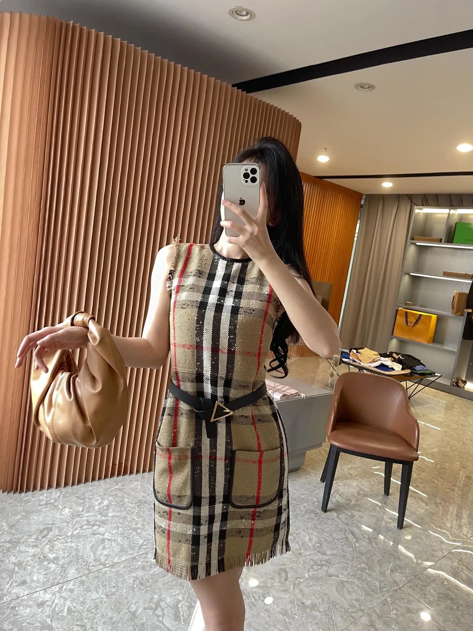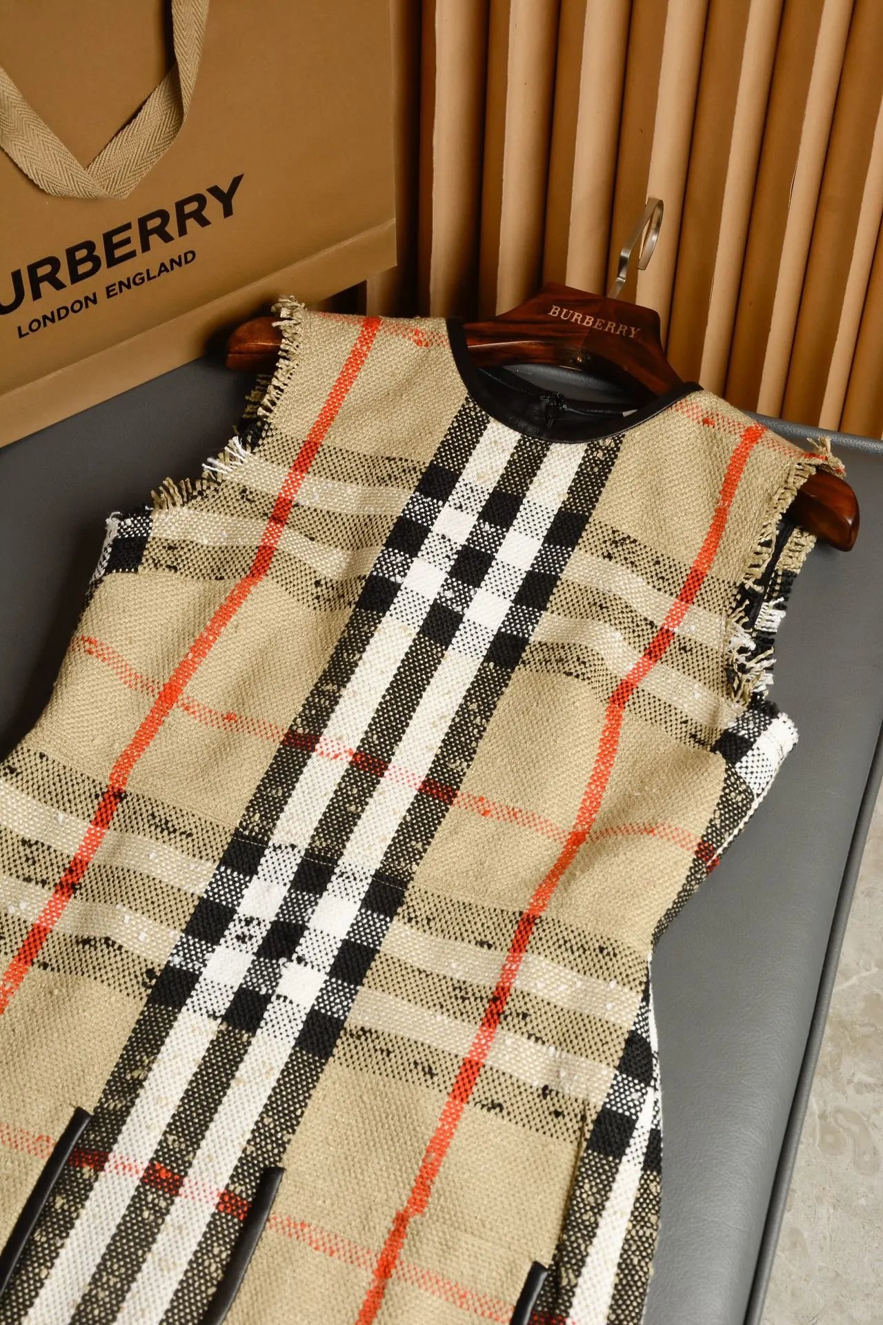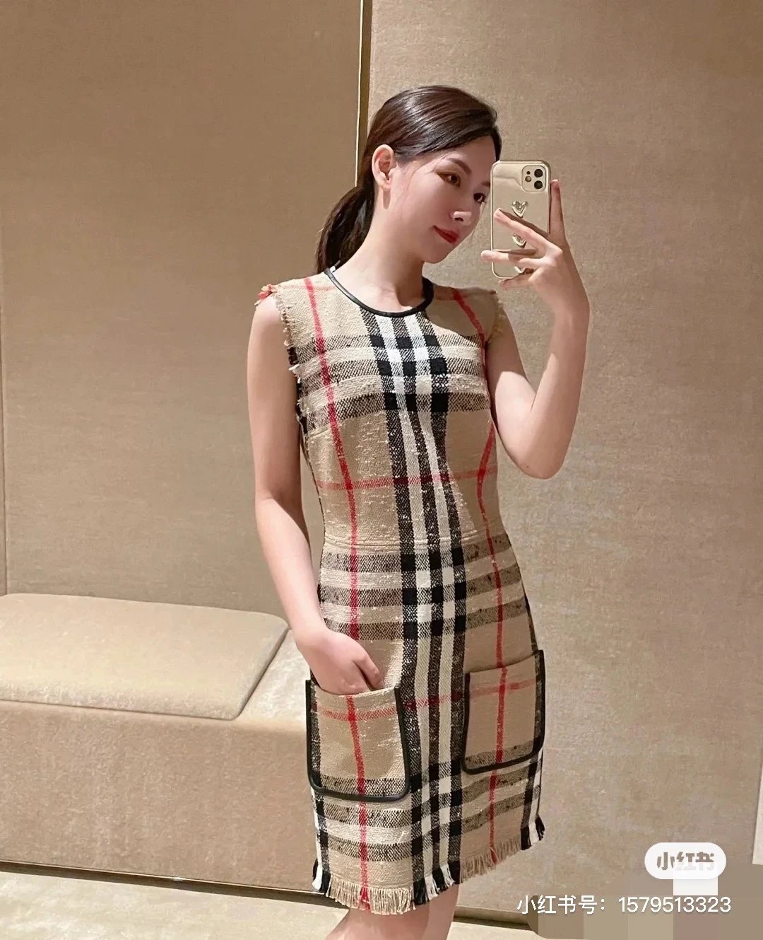 [Damen bekleidung] B * urberry Plaid Quaste Kurzarm kleid