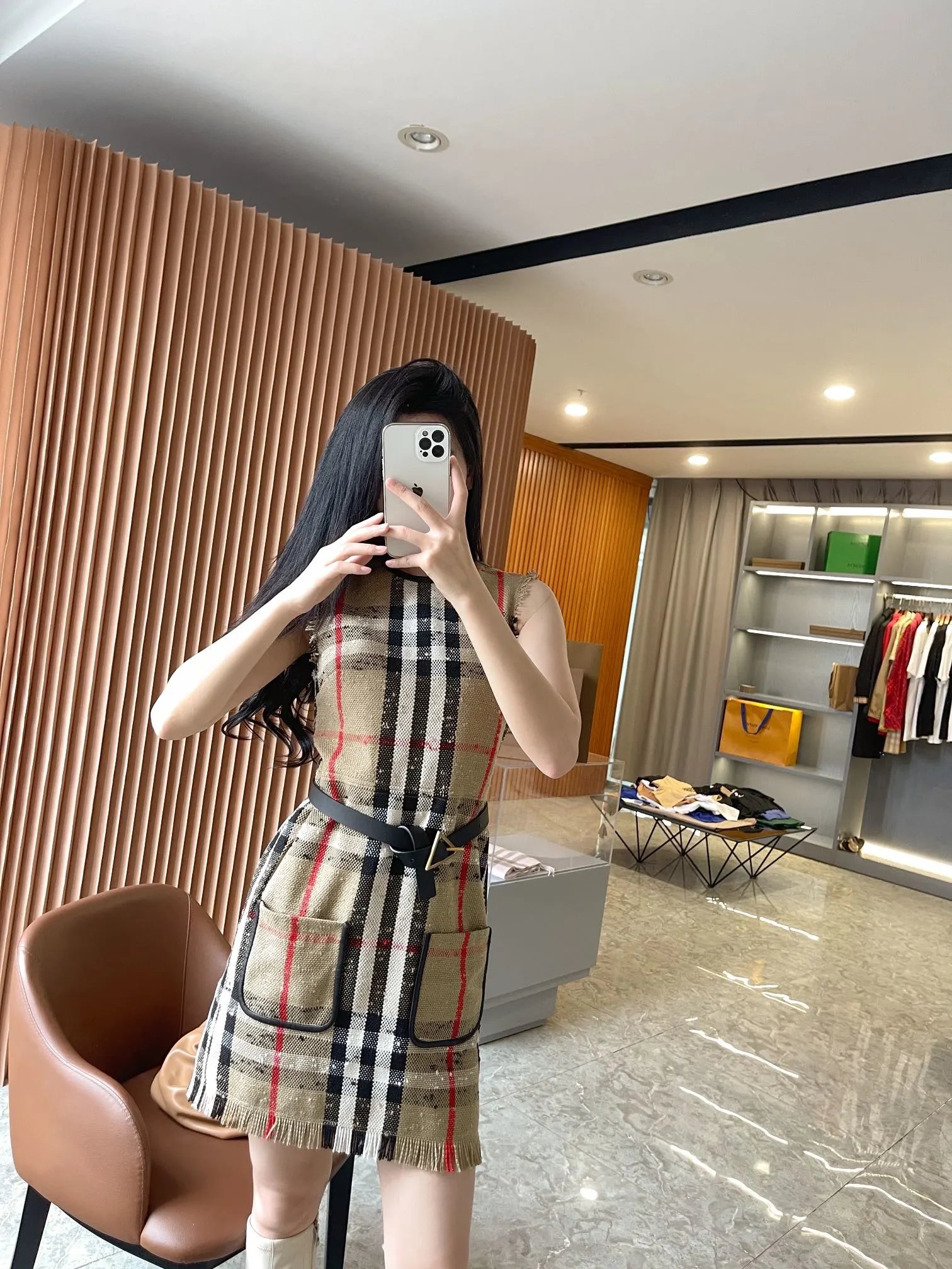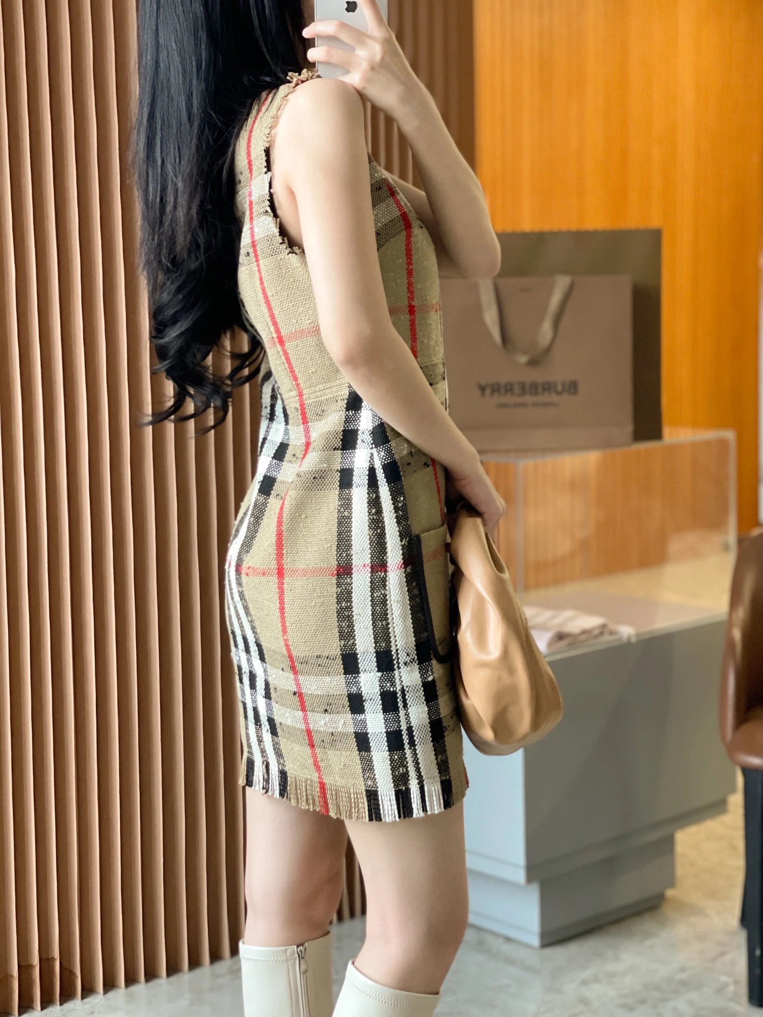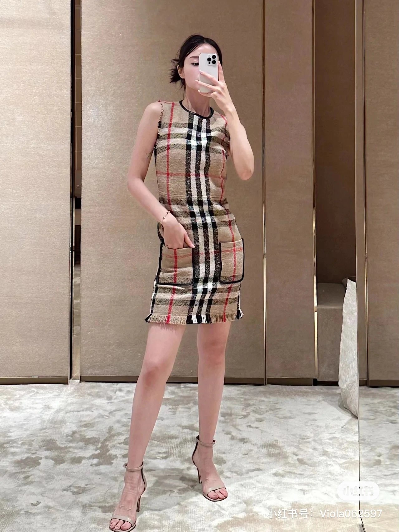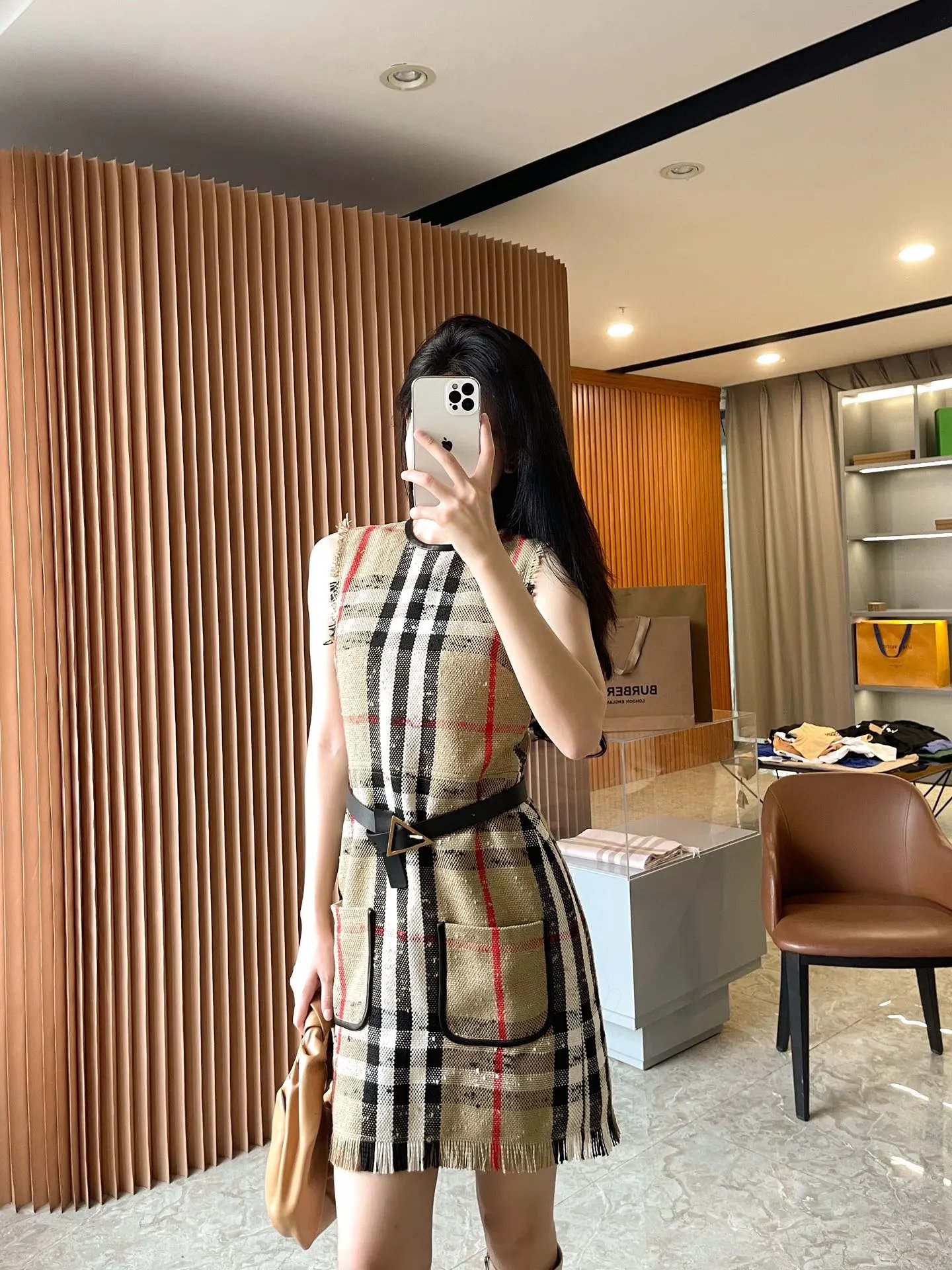 [Damen bekleidung] B * urberry Plaid Quaste Kurzarm kleid