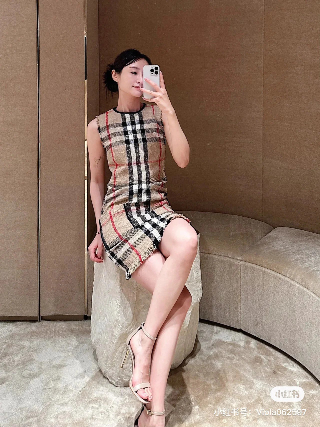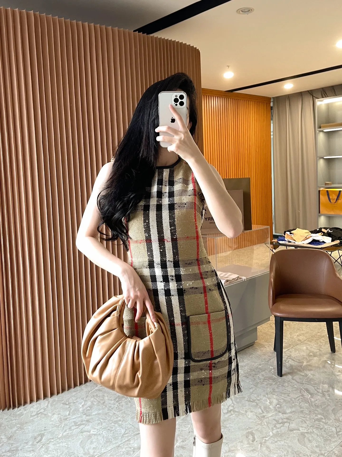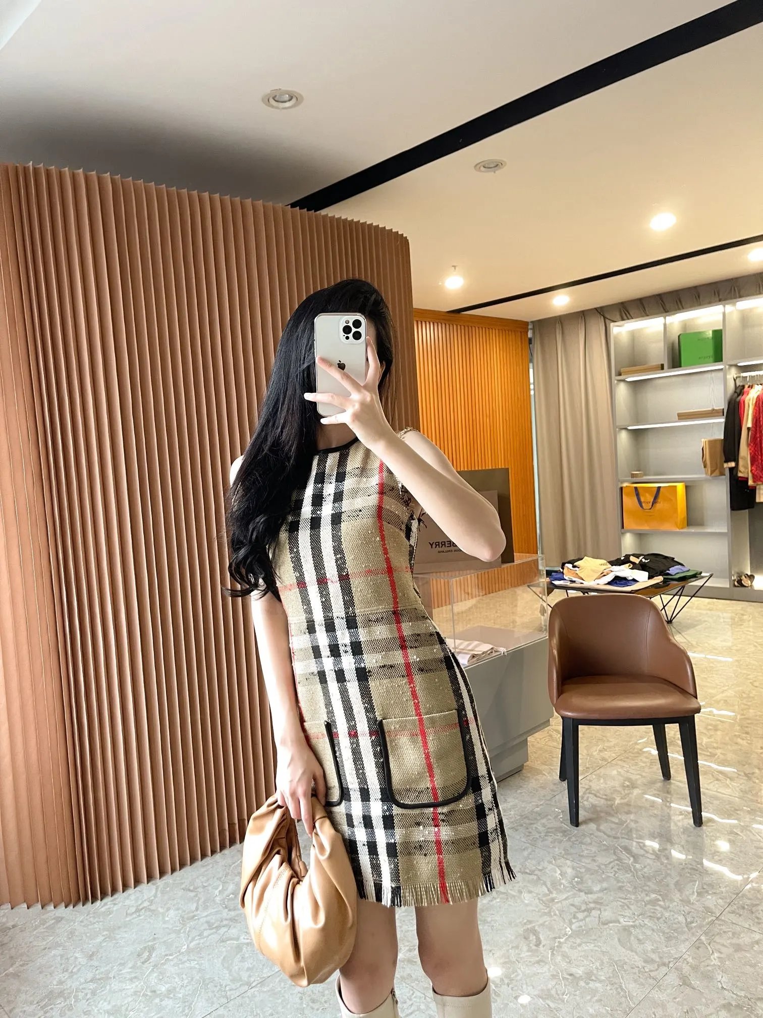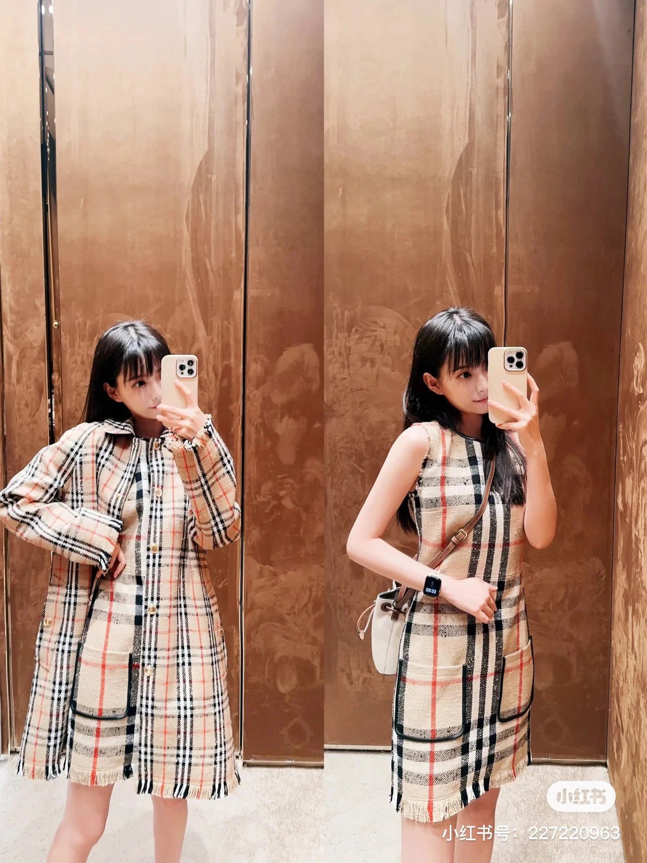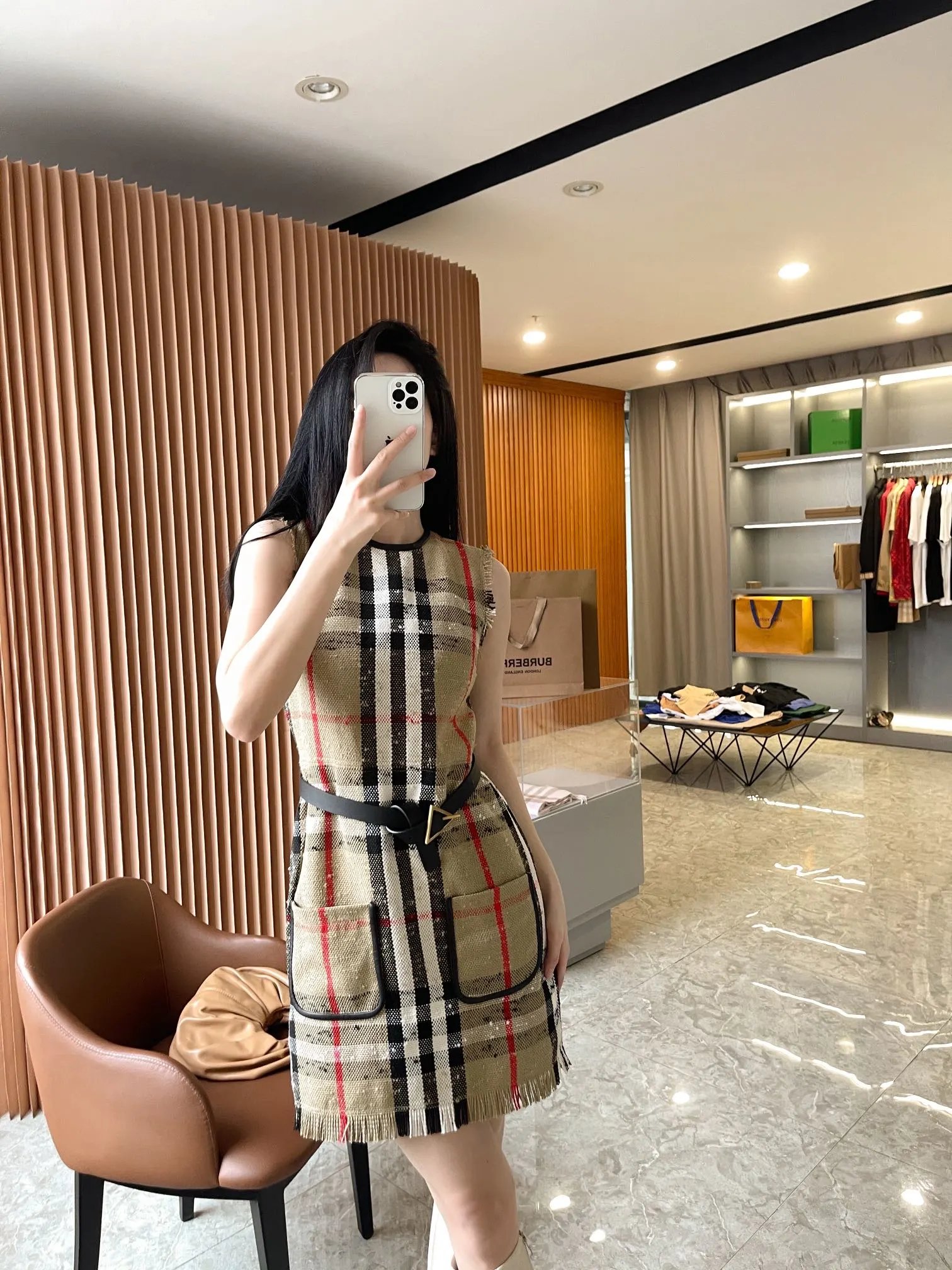 [Damen bekleidung] B * urberry Plaid Quaste Kurzarm kleid