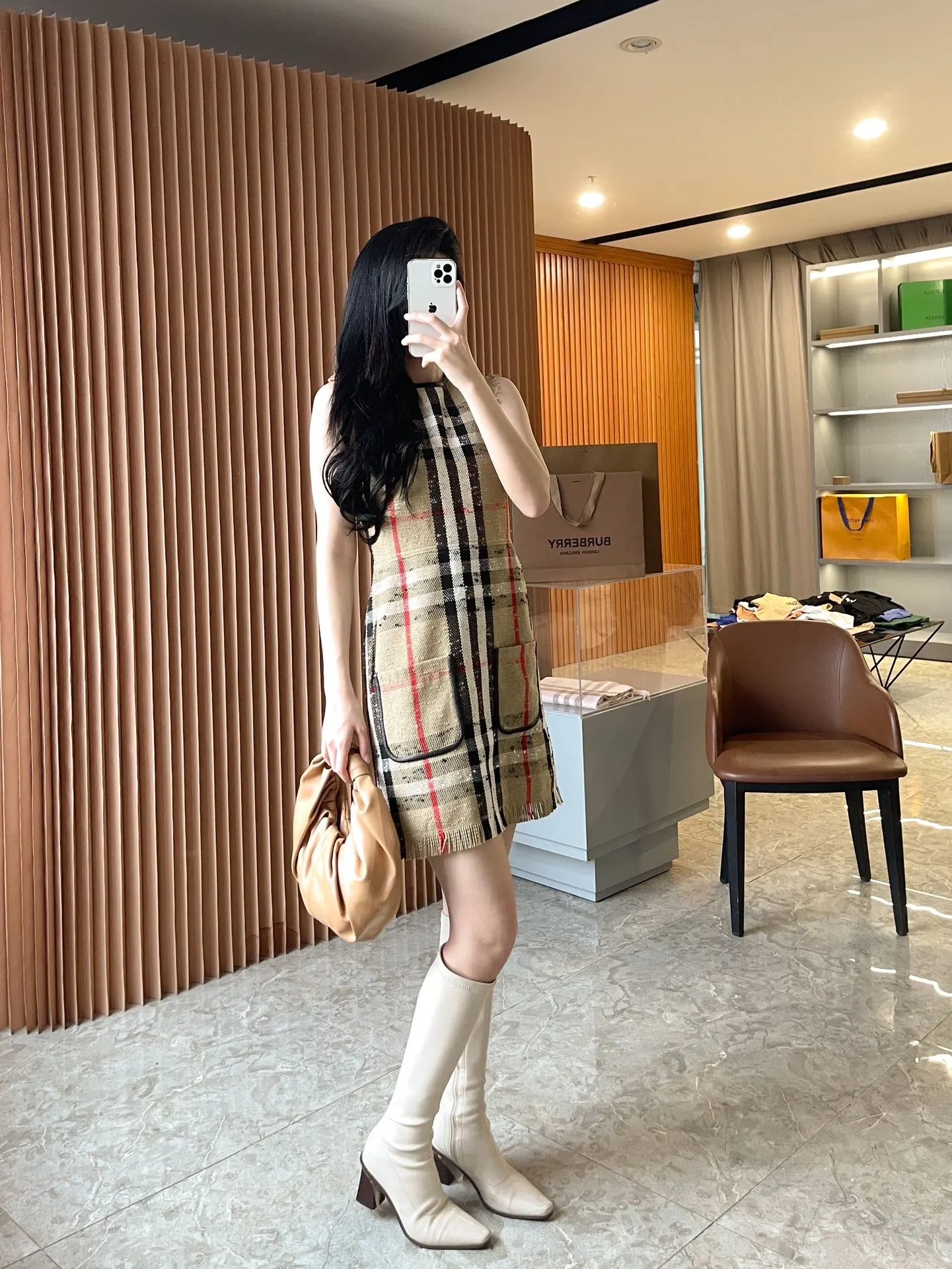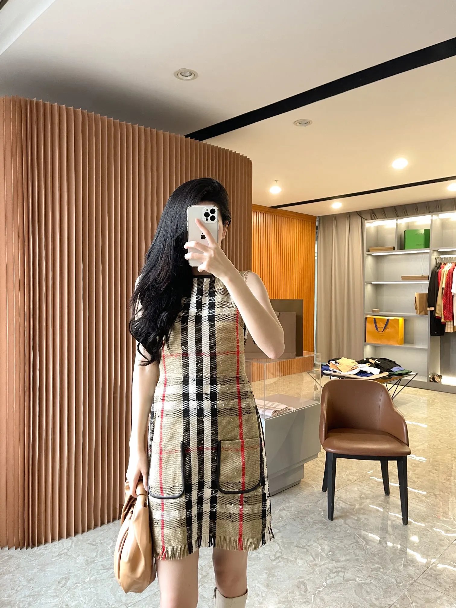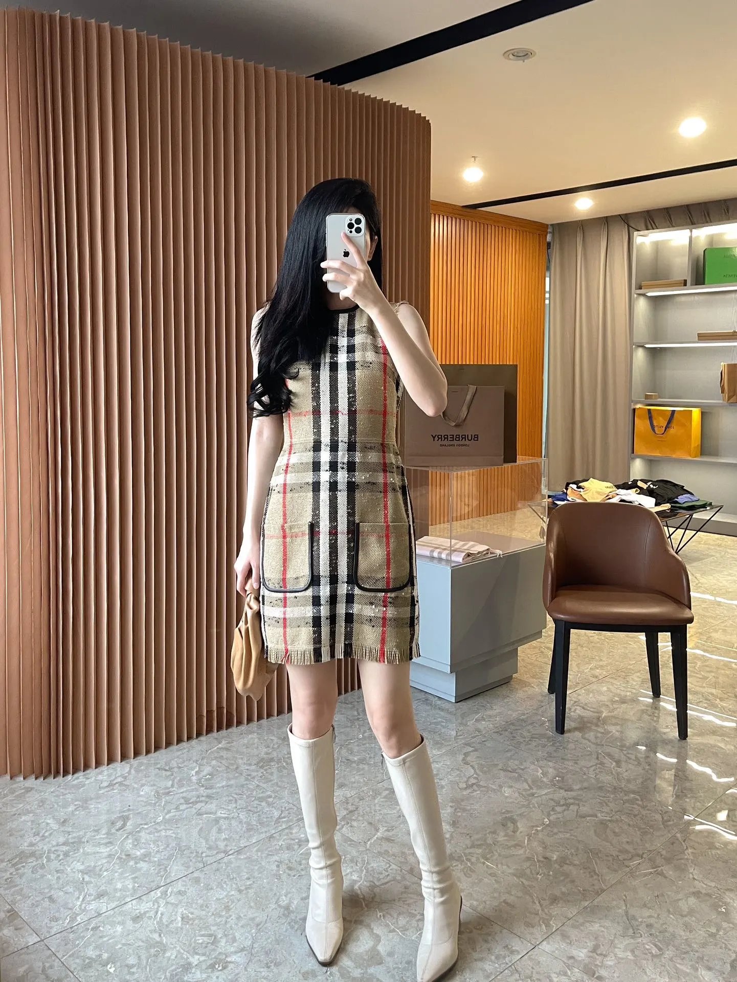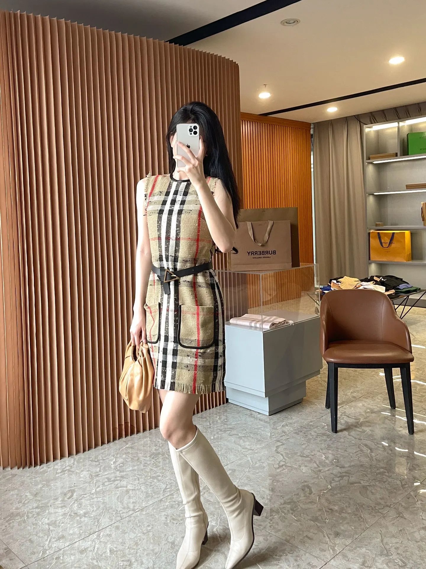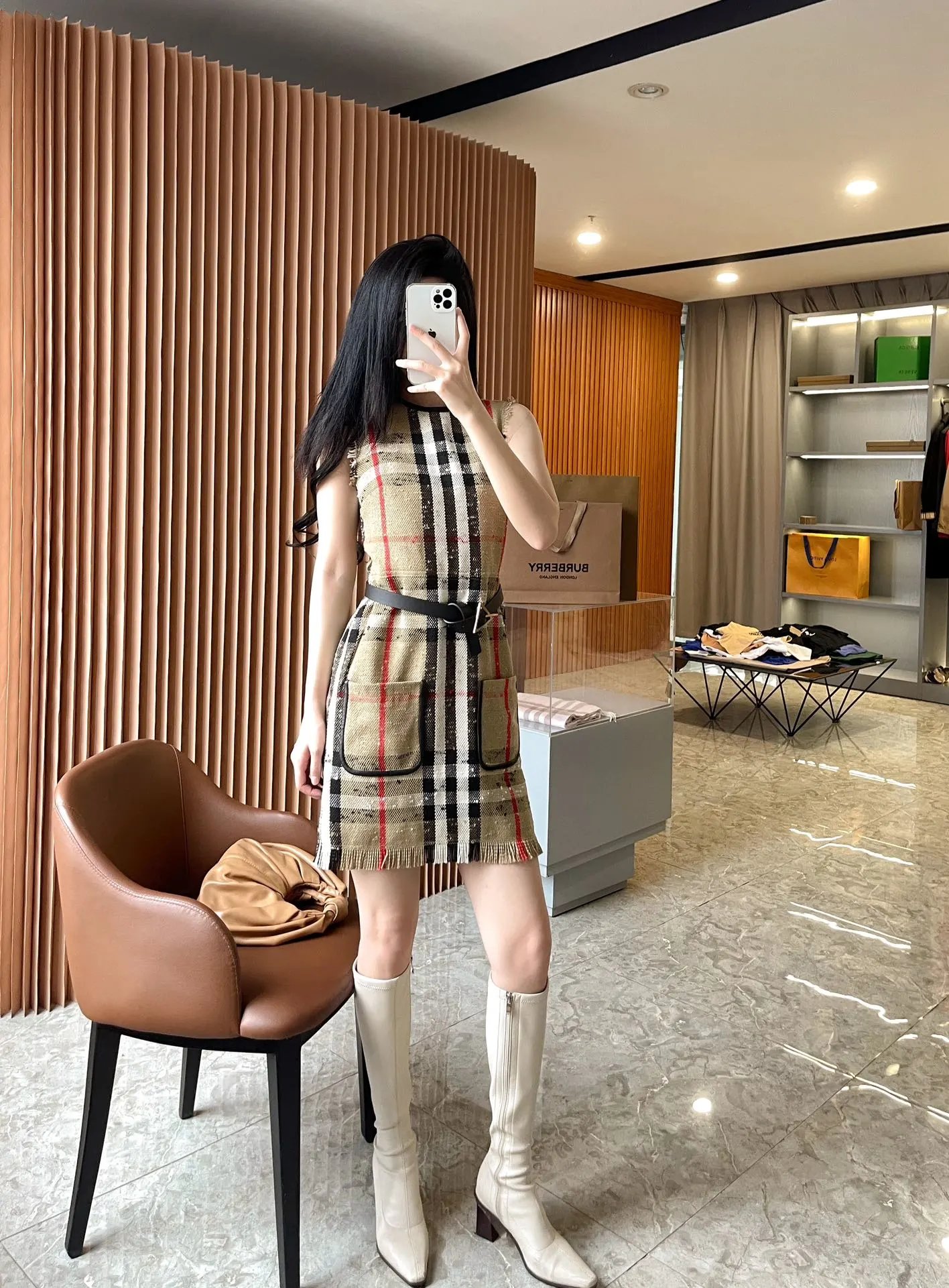 [Damen bekleidung] B * urberry Plaid Quaste Kurzarm kleid