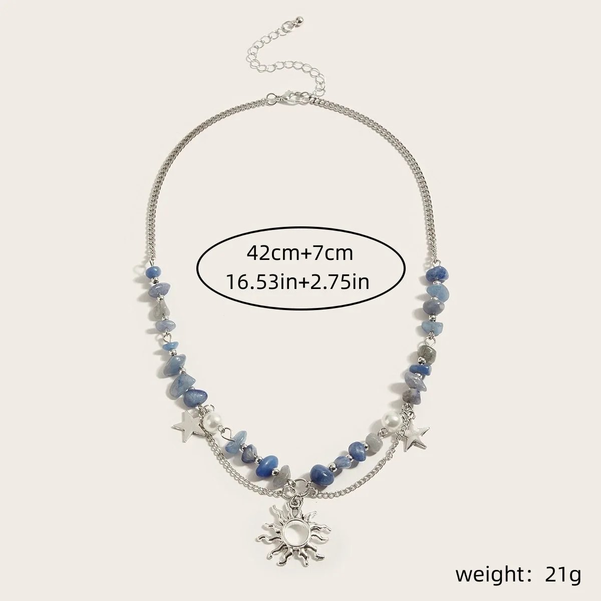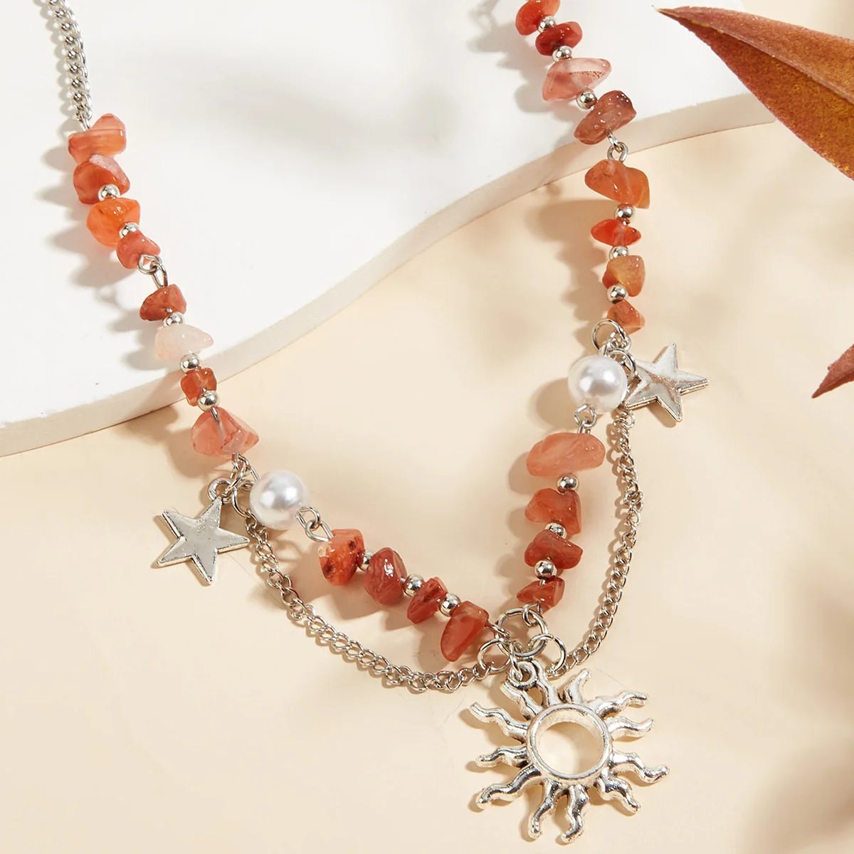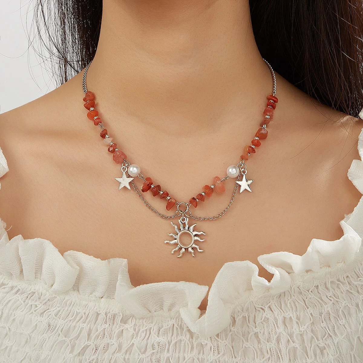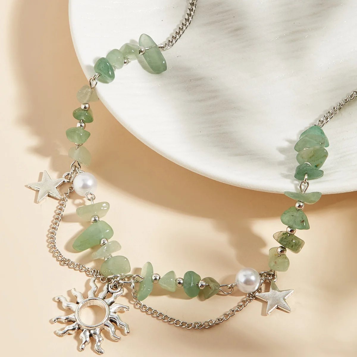 Europäisches und amerikanisches grenz überschreiten des Nischen design mit Perlen quasten, Sonnens terne, farbige unregelmäßige Kies-Schlüsselbein-Halskette