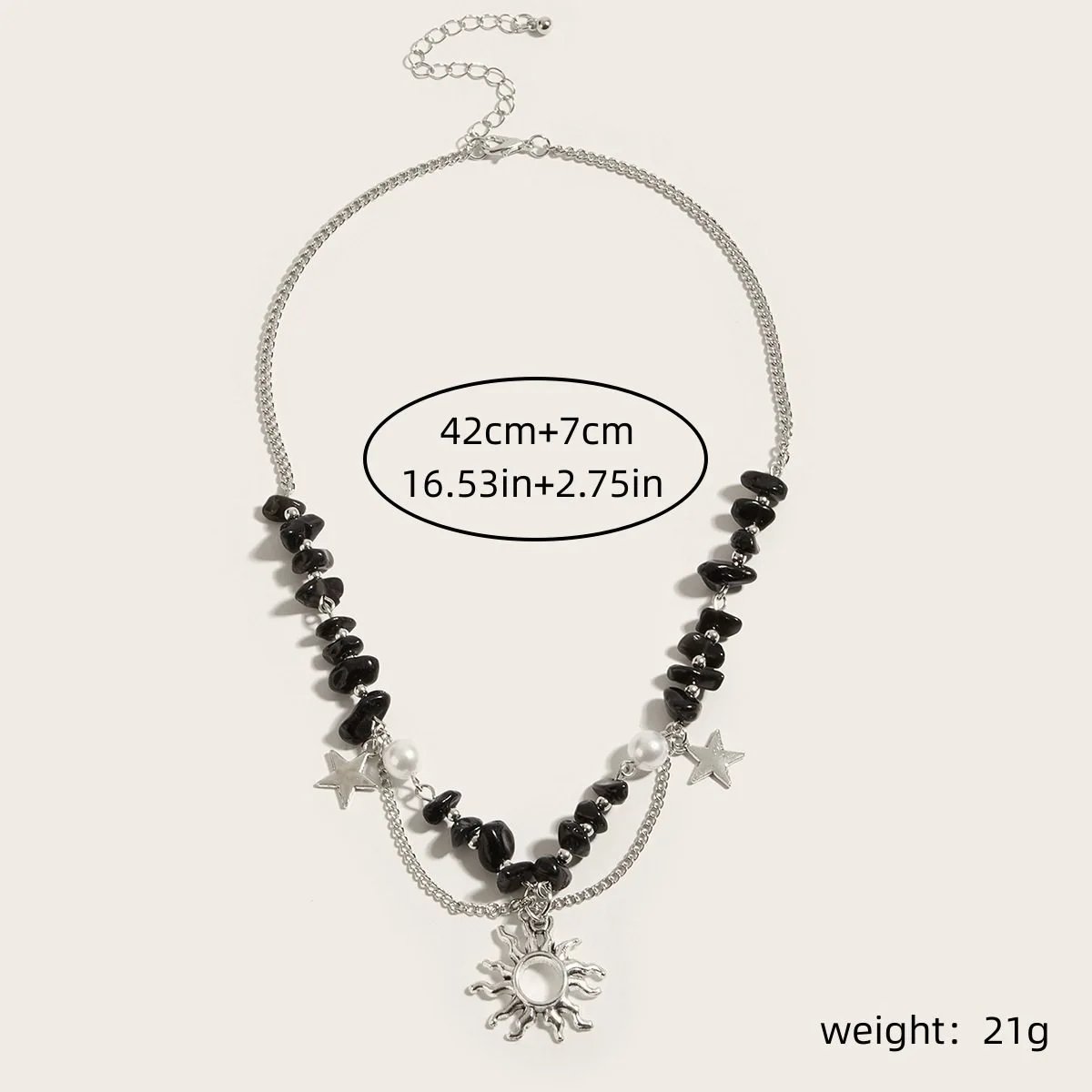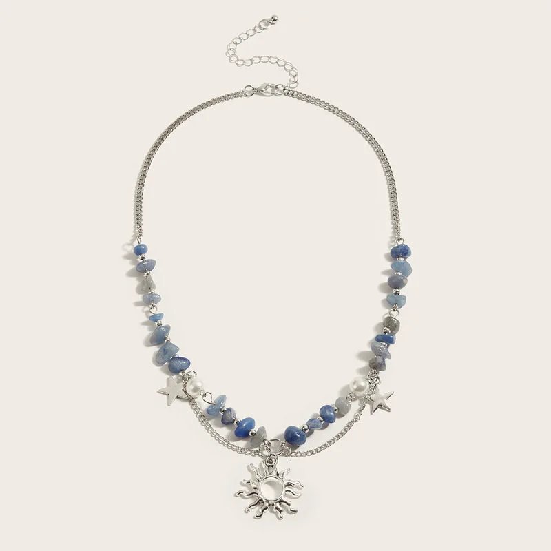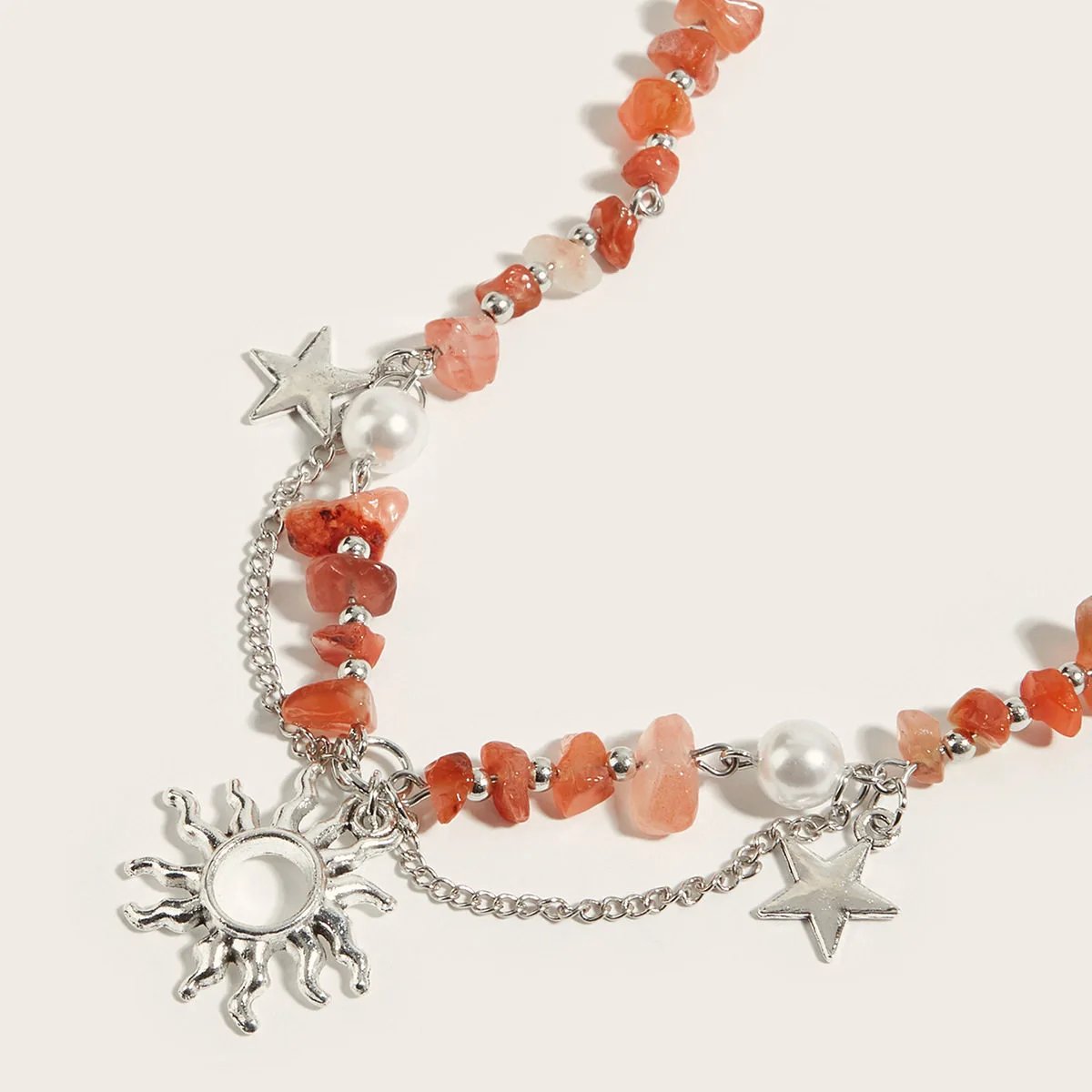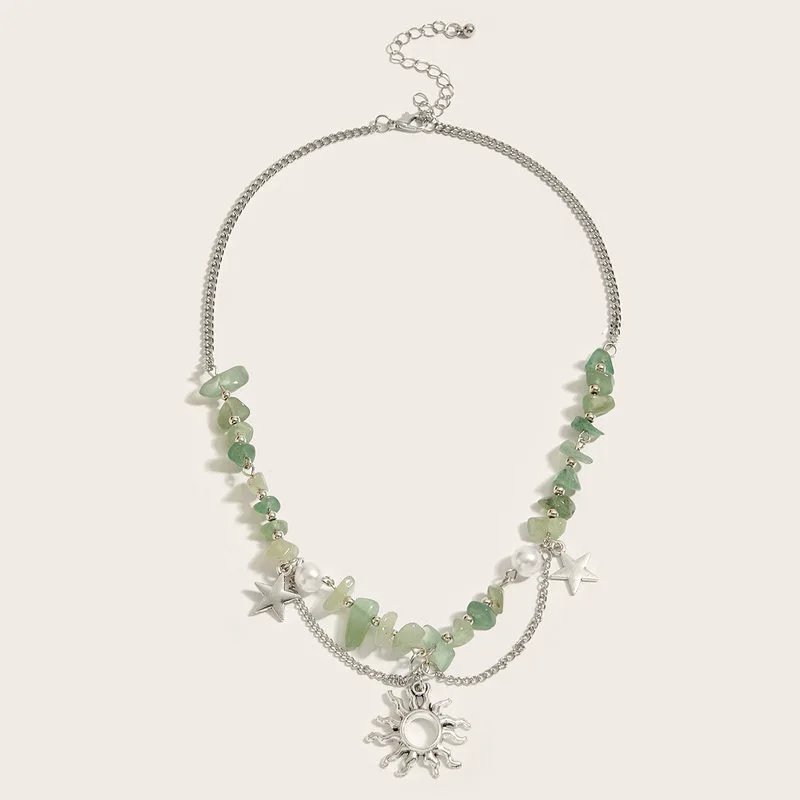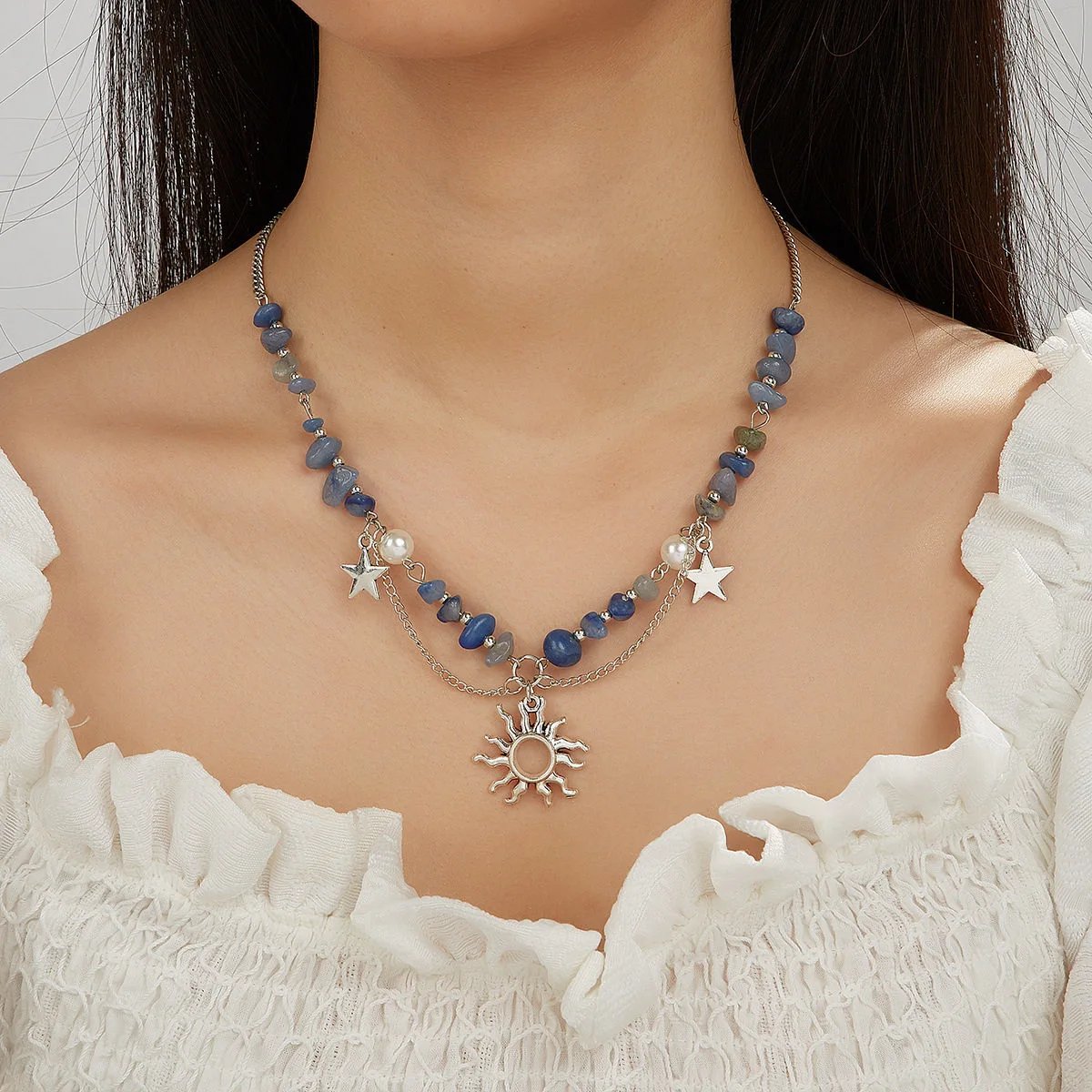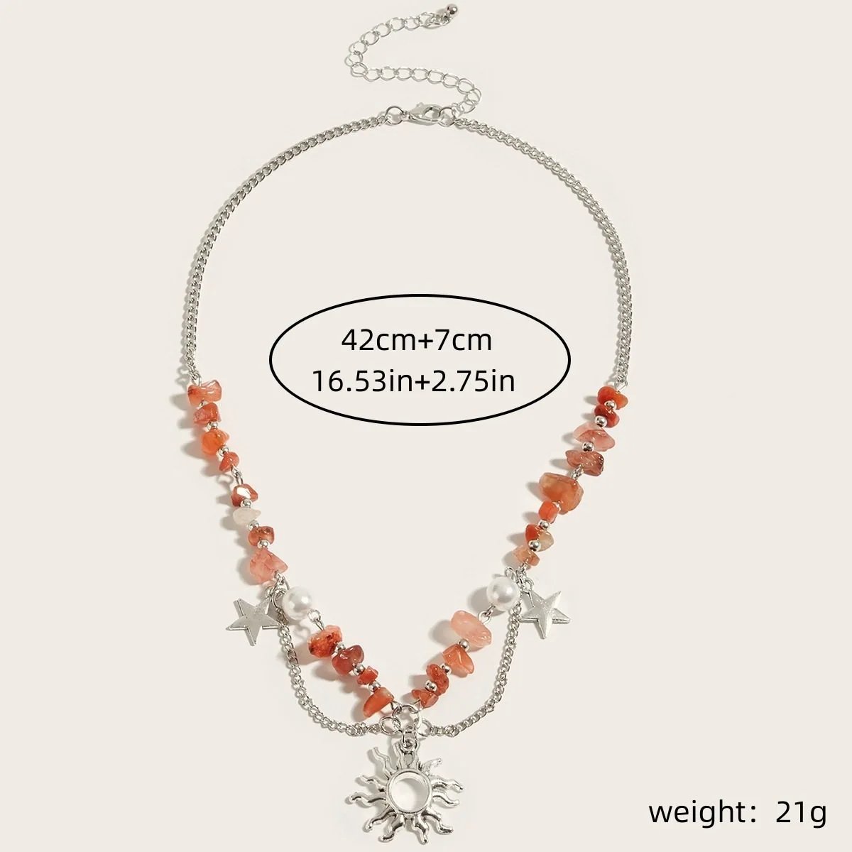 Europäisches und amerikanisches grenz überschreiten des Nischen design mit Perlen quasten, Sonnens terne, farbige unregelmäßige Kies-Schlüsselbein-Halskette