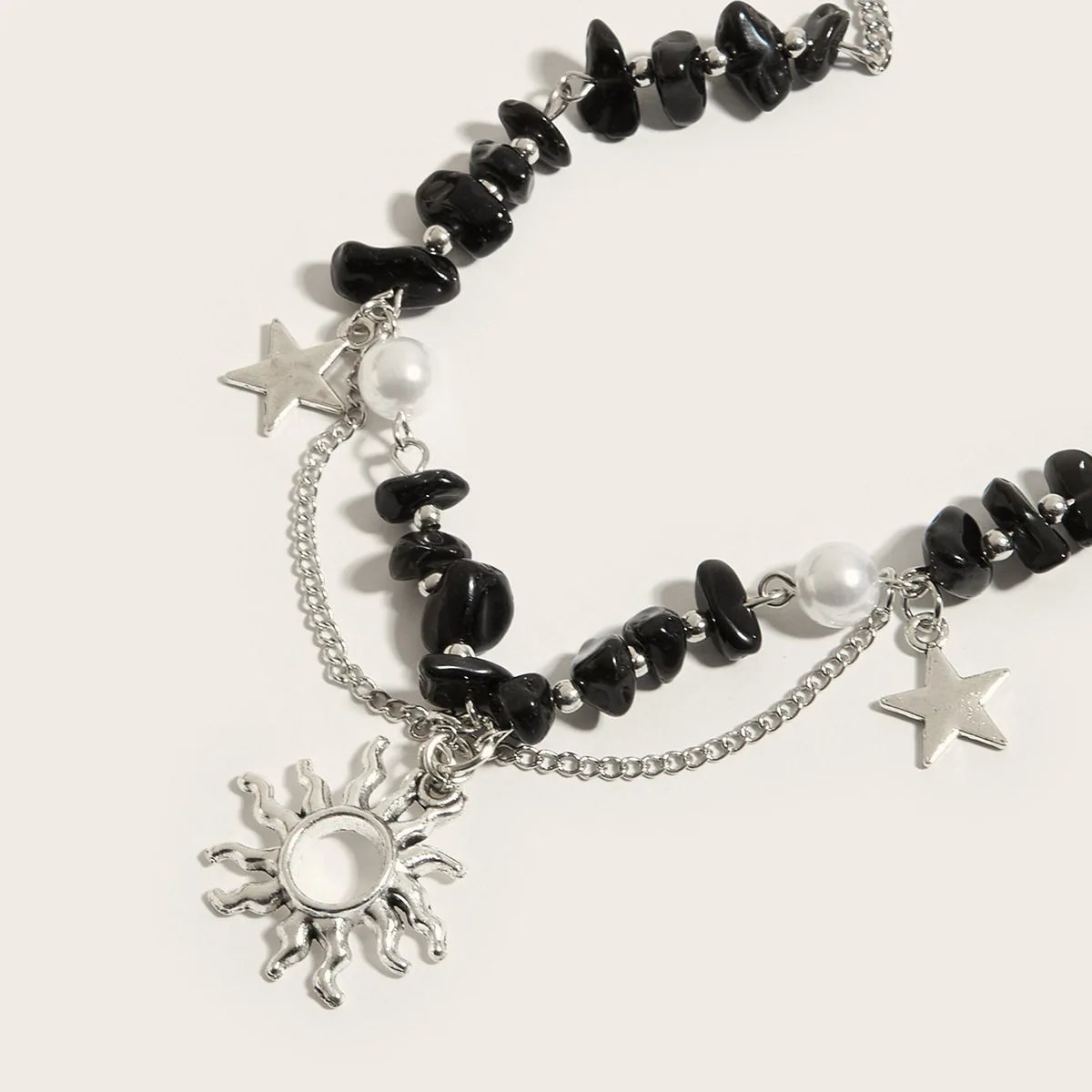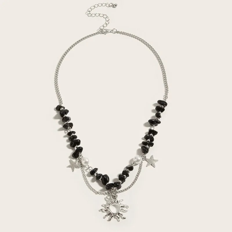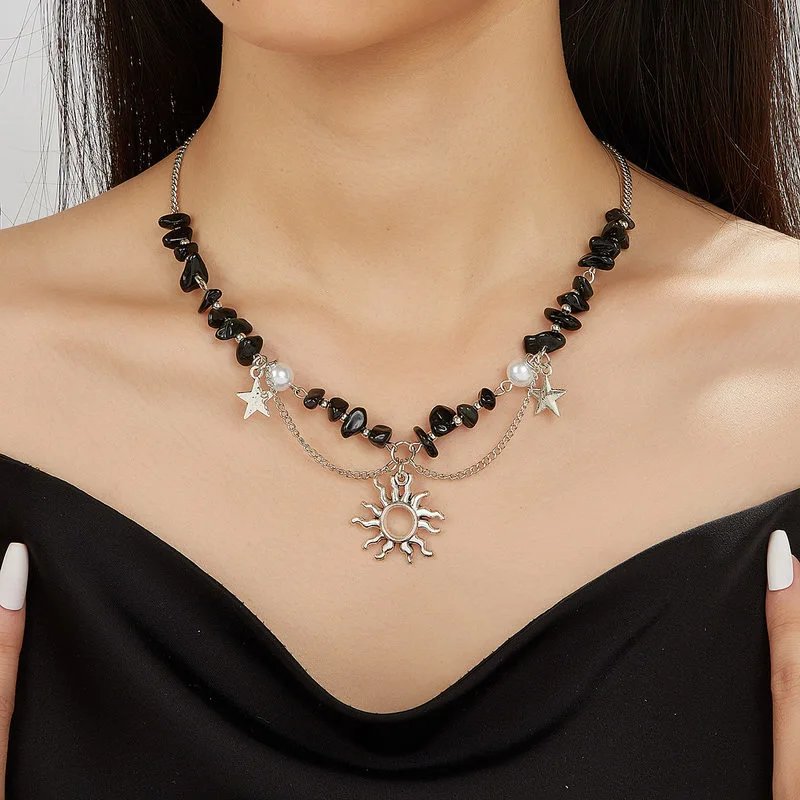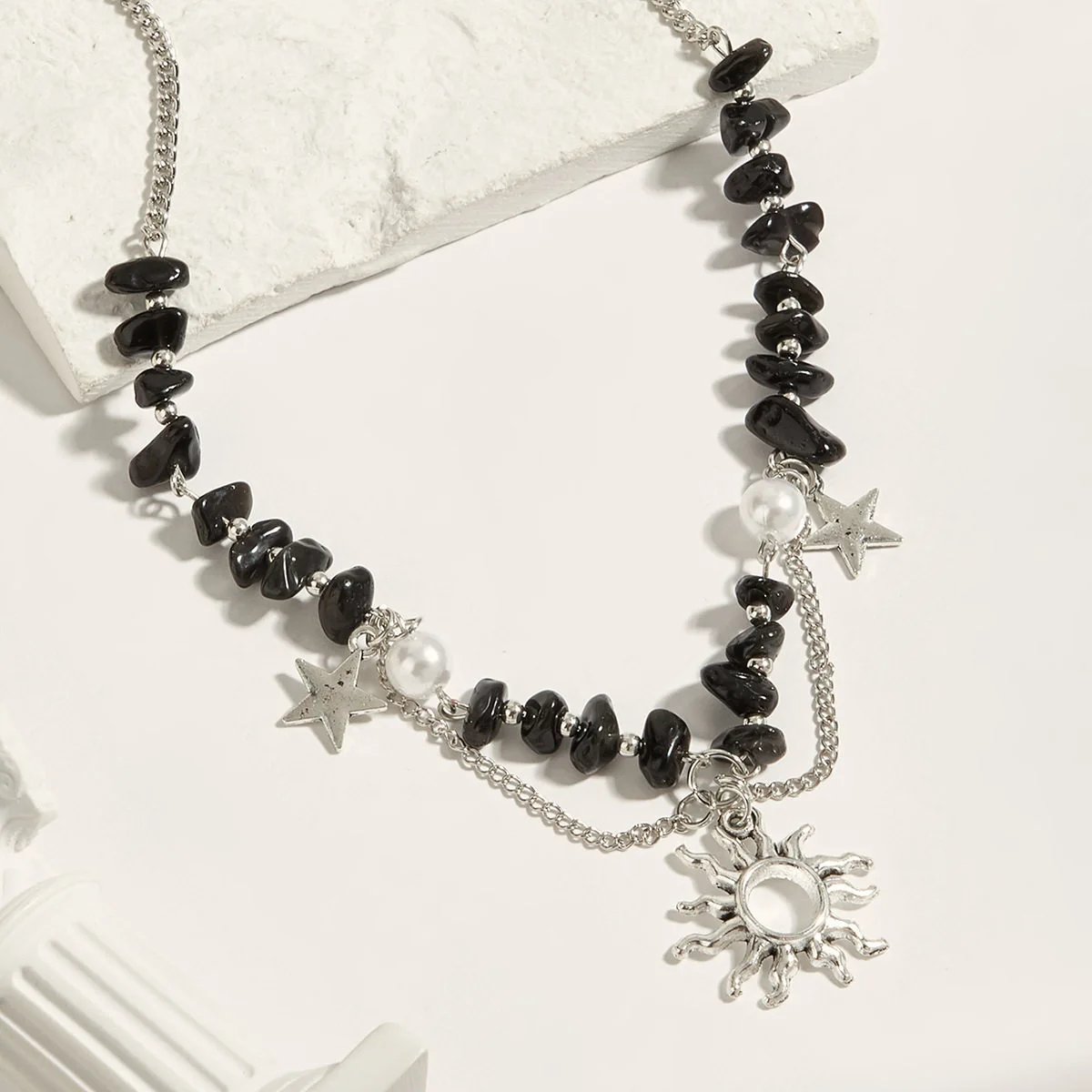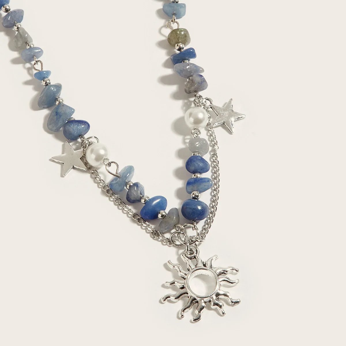Europäisches und amerikanisches grenz überschreiten des Nischen design mit Perlen quasten, Sonnens terne, farbige unregelmäßige Kies-Schlüsselbein-Halskette